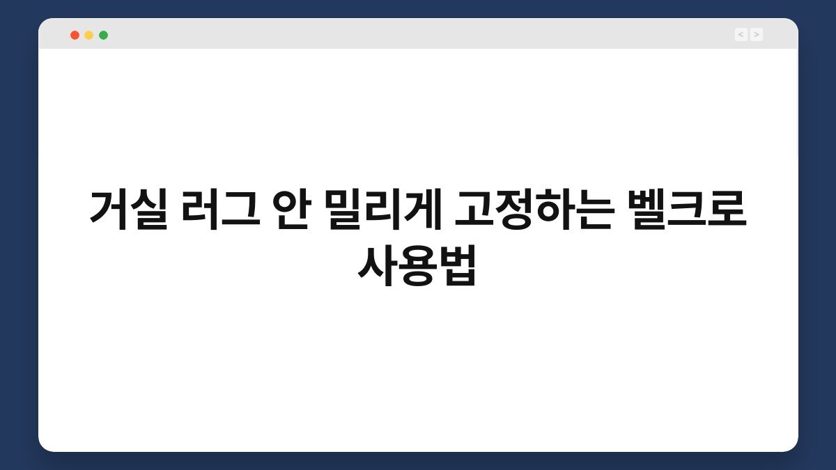 거실 러그는 집안의 분위기를 좌우하는 중요한 요소입니다. 하지만 자주 밀리거나 움직이는 문제로 스트레스를 받는 분들이 많습니다. 저 역시 거실에서 러그가 자꾸 밀리는 문제로 고민한 적이 있습니다. 이럴 때마다 불편함을 느끼고, 결국에는 다시 정리해야 했죠. 그래서 저는 벨크로를 이용해 러그를 고정하는 방법을 찾게 되었습니다. 이 글을 통해 거실 러그 안 밀리게 고정하는 벨크로 사용법을 알아보면, 여러분도 간편하게 문제를 해결할 수 있을 것입니다.