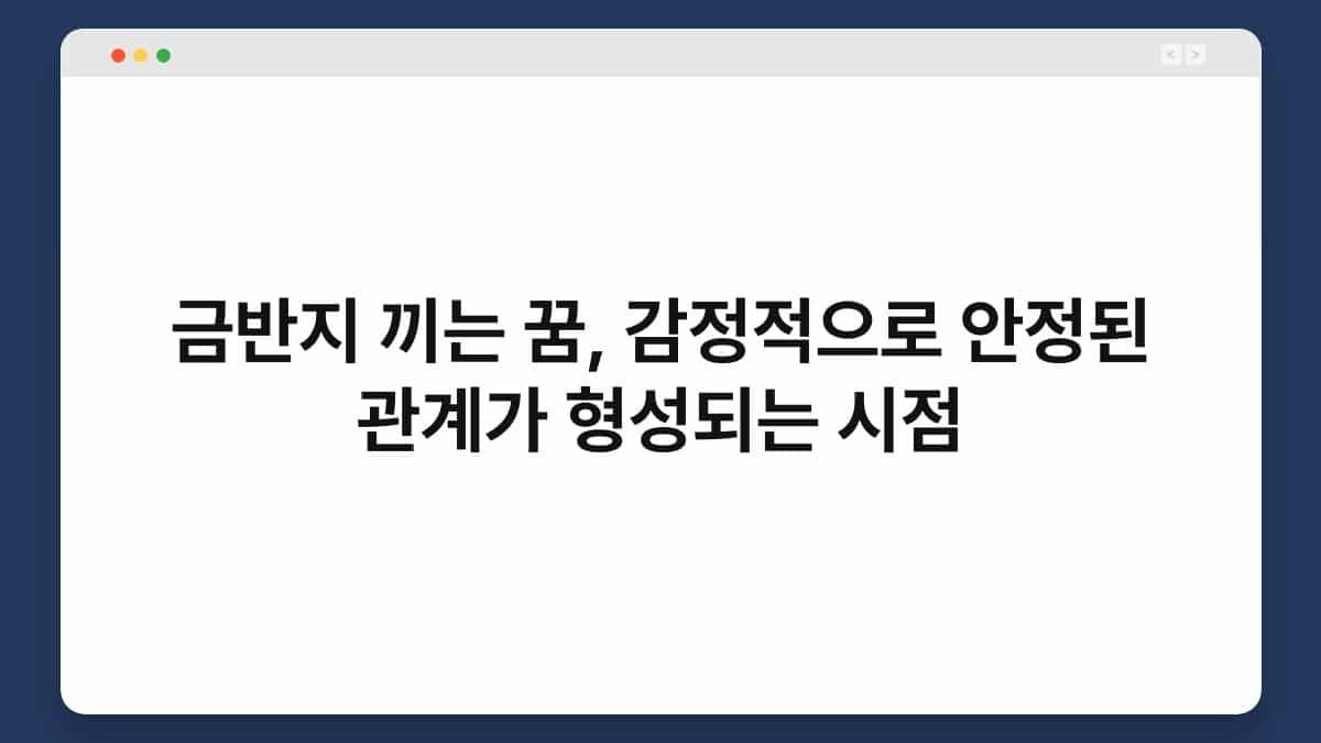 감정적으로 안정된 관계는 신뢰와 이해를 바탕으로 형성됩니다. 이는 서로의 감정을 존중하고, 솔직하게 소통하는 것에서 시작합니다. 이러한 관계는 서로를 지지하고, 힘든 순간에도 함께할 수 있는 힘을 줍니다. 금반지 끼는 꿈은 이러한 관계의 기초가 다져질 시점을 나타내기도 합니다.
