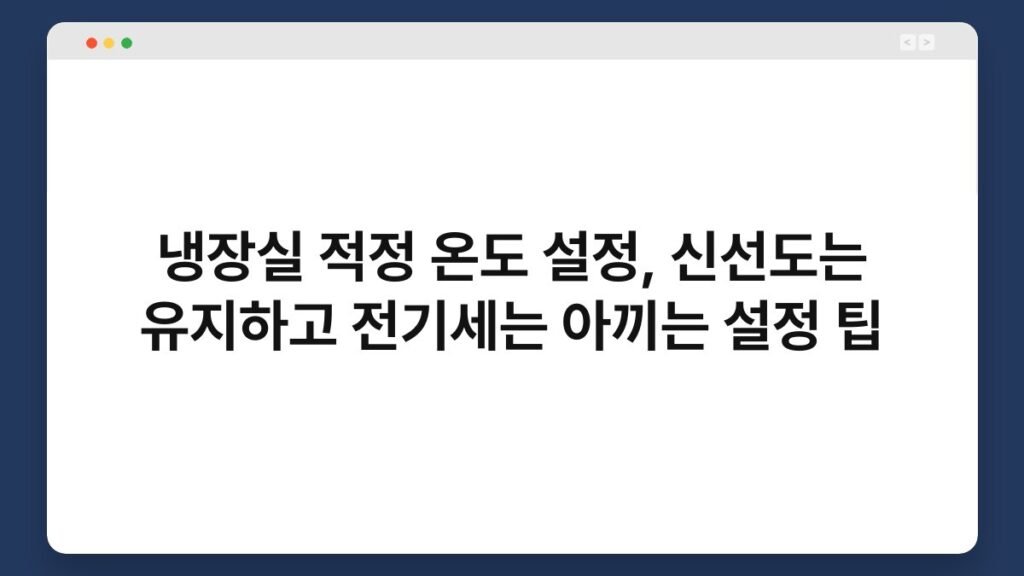 냉장실의 적정 온도 설정은 신선한 식품을 유지하는 데 매우 중요합니다. 많은 분들이 냉장고의 온도를 어떻게 설정해야 할지 고민하시죠. 너무 낮게 ...