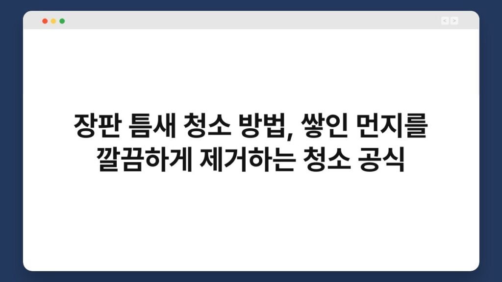 장판 틈새 청소 방법은 많은 가정에서 간과되는 부분입니다. 여러분도 장판과 바닥 사이에 쌓인 먼지를 보며 불편함을 느끼신 적이 있으실 텐데요. ...