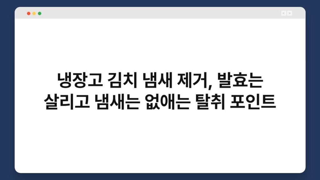 냉장고 김치 냄새 제거는 많은 가정에서 겪는 흔한 문제입니다. 김치는 발효식품으로, 그 특유의 향이 매력적이기도 하지만, 냉장고에 오래 두면 불쾌한 ...